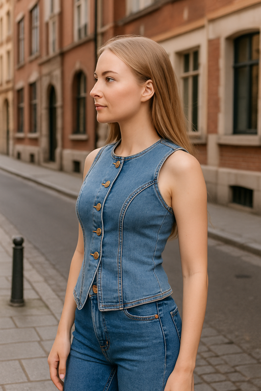 Women's Casual Washed Button Front Sleeveless Denim Shirt