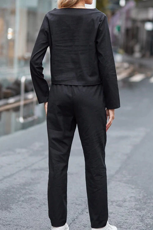 Discover refined comfort with The Elegance Set, a matching two-piece designed for the modern, sophisticated woman. Crafted from a breathable cotton-linen blend, it combines understated luxury with all-day ease — perfect for travel, leisure, or everyday wear.