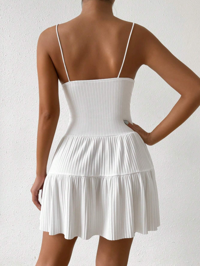 Allurite White Ribbed Knit Spaghetti Strap Dress