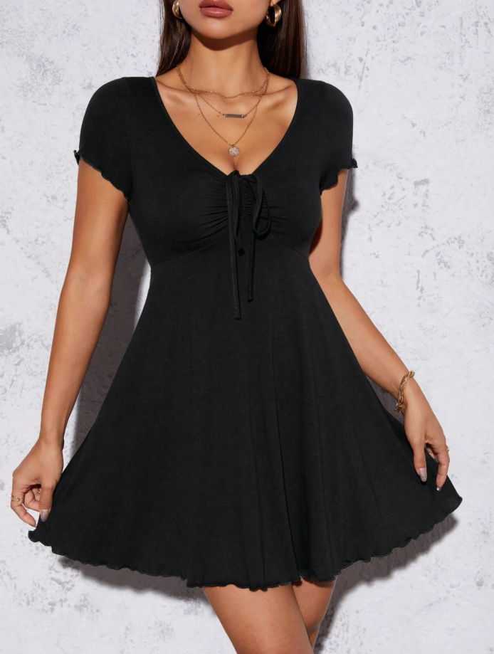 Black Drawstring Mini Dress