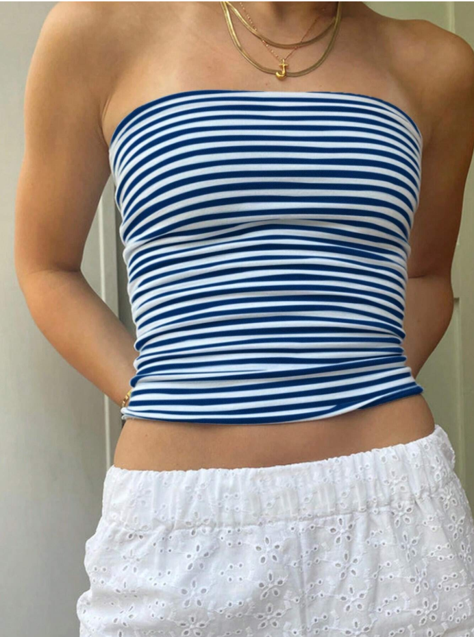 Elevate your summer style with the Casual Striped Print Bandeau Tube Top! This chic strapless top features a bold blue and white stripe pattern, perfect for pairing with your favorite shorts or skirts. Ideal for beach days, picnics, or casual outings, it’s a must-have for warm-weather wardrobes.