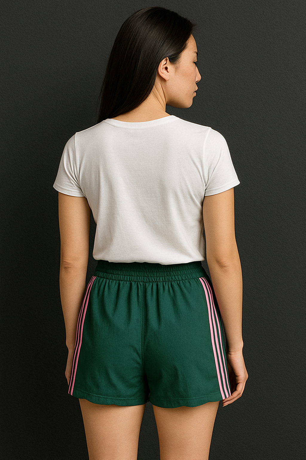 Stay cool and stylish with the Comfortcana Women's Side Stripe Shorts! These casual loose shorts feature a vibrant green base with bold pink and white side stripes, an elastic waist, and a waterproof finish—perfect for summer adventures, beach days, or relaxed outings with a Y2K twist.
