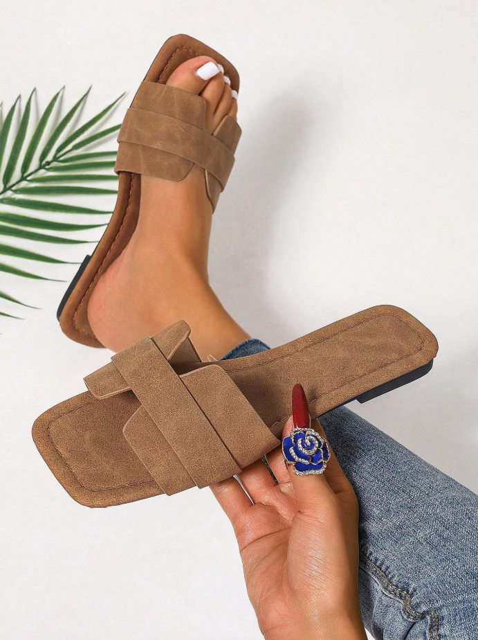 Step into effortless summer elegance with these chic brown slip-on sandals. Designed for comfort and versatility, they’re your go-to choice for everything from beach strolls to casual city outings.