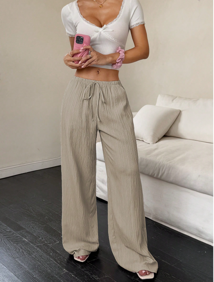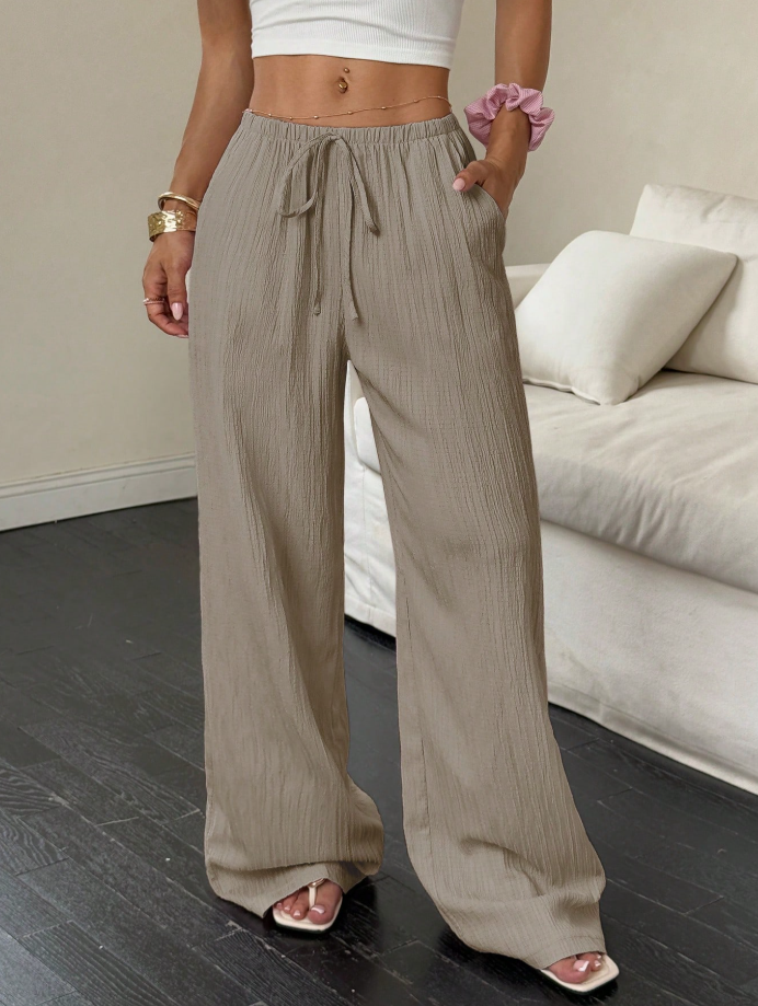 Comfort meets elegance with these effortlessly chic wide-leg trousers. Designed to elongate the silhouette and drape beautifully on any body shape, these pants are your go-to choice for a breezy yet polished look.