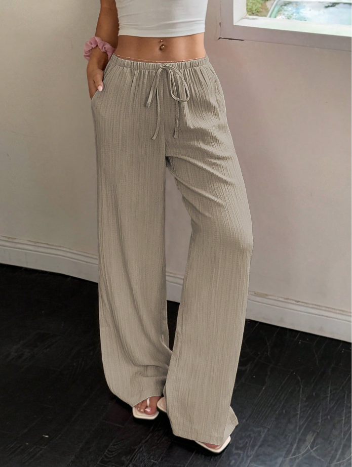 Style these khaki trousers with a crisp white crop top or a tucked-in blouse for a clean, contemporary look. Add sandals or white sneakers for casual days, or elevate with heels and a statement bag for an effortlessly cool vibe.