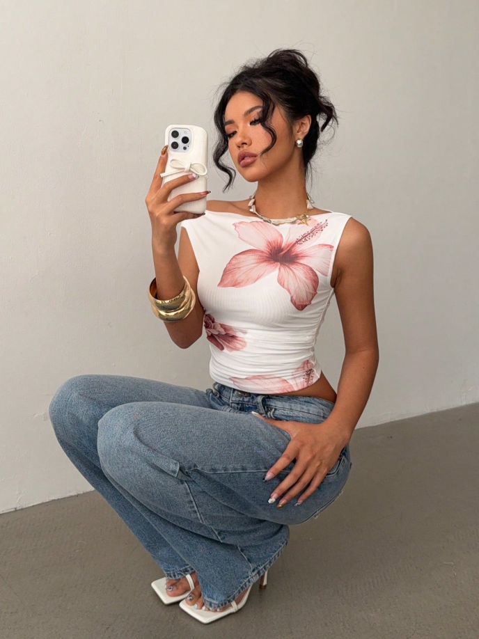 • Floral Print Pop: The oversized bloom makes this more than a basic — it’s a statement.