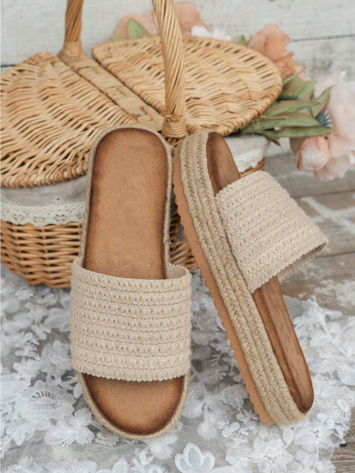 Handmade Mesh Strap Jute Wedge Sandals – Natural Comfort & Effortless Style