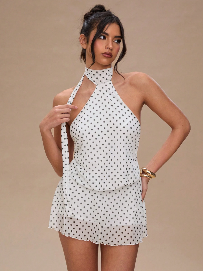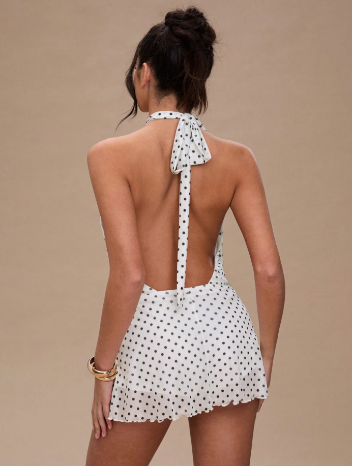 Polka Dot Halter Mini Dress – Retro Chic Reimagined