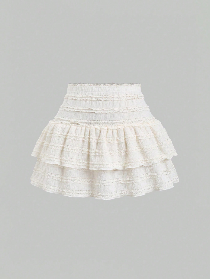Embrace the Y2K vibe with the Sweetra Solid Color Ruffle Trim Skirt! This chic piece features a double-layered hem with delicate ruffle trim and a subtle number print, perfect for casual outings or a trendy resort look. Its lightweight design adds a playful yet elegant touch to your wardrobe.