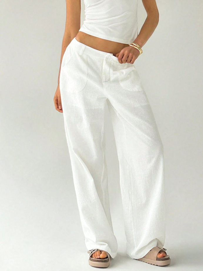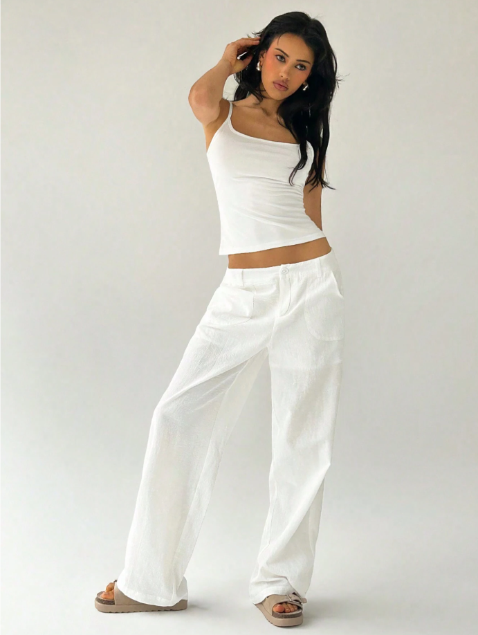 Style these pants with a cropped tank or bandeau top and flat sandals for a breezy beach look, or dress them up with a structured blazer and platform sneakers for an urban casual outfit. Add minimal gold jewelry for an elevated finish.