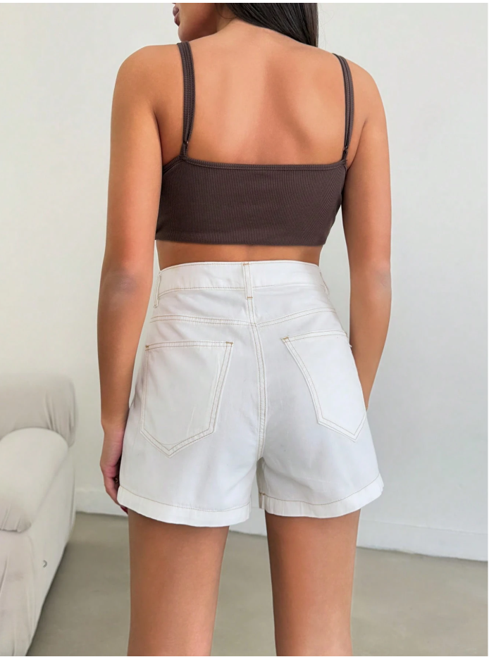 White High-Waisted Denim Shorts