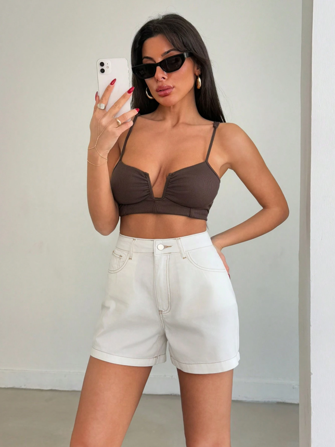 Pair them with a ribbed crop top and chunky sneakers for a sporty vibe, or tuck in a linen button-down with sandals for an effortlessly polished look. Add layered necklaces and cat-eye shades for the ultimate hot-girl summer energy.